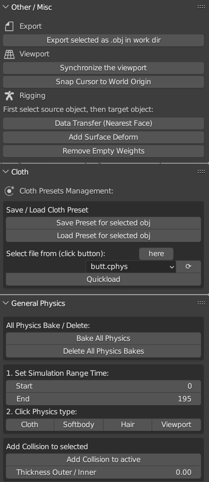 - Save / Load Cloth Preset including Enabling / Disabling Pressure or Internal springs and so on